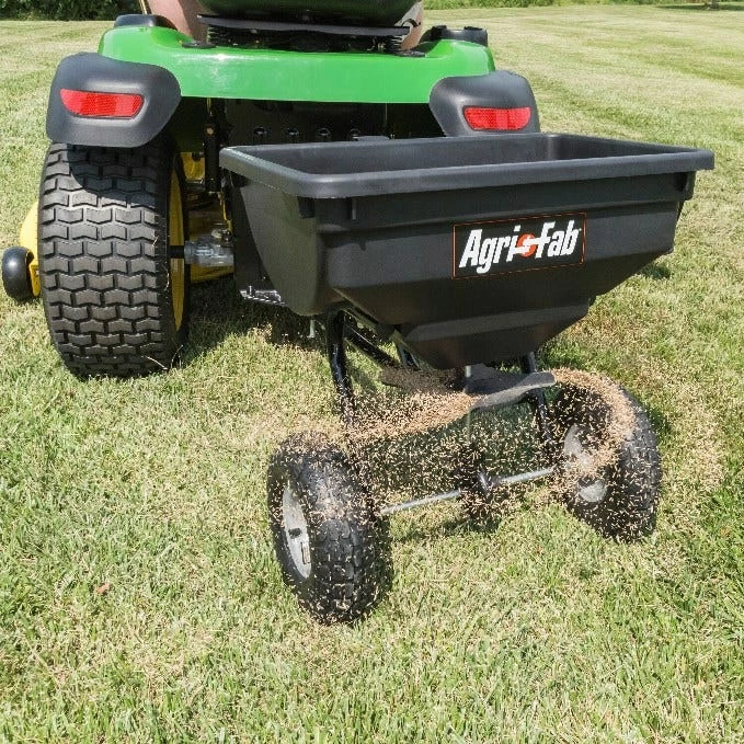 Agri-Fab 85 lb. Tow Spreader is a good choice when you need to start, re-start or weed and feed your lawn, spread everything from fertilizer to seed to ice melt with this spreader.