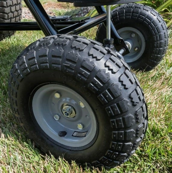 - Its large, 10 in. x 4 in. turf tread rubber tires provide sure-grip traction and smooth-rolling maneuverability