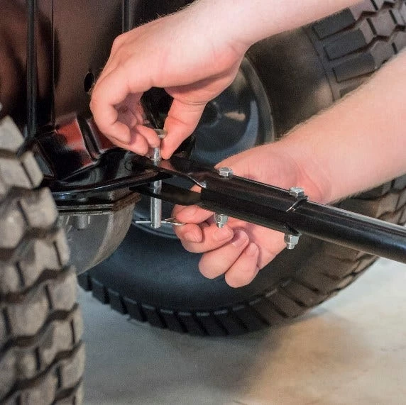 - Boasting a universal design, this seed and fertilizer spreader conveniently fits all brands of riding lawn tractors