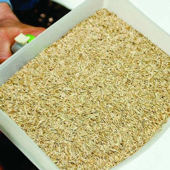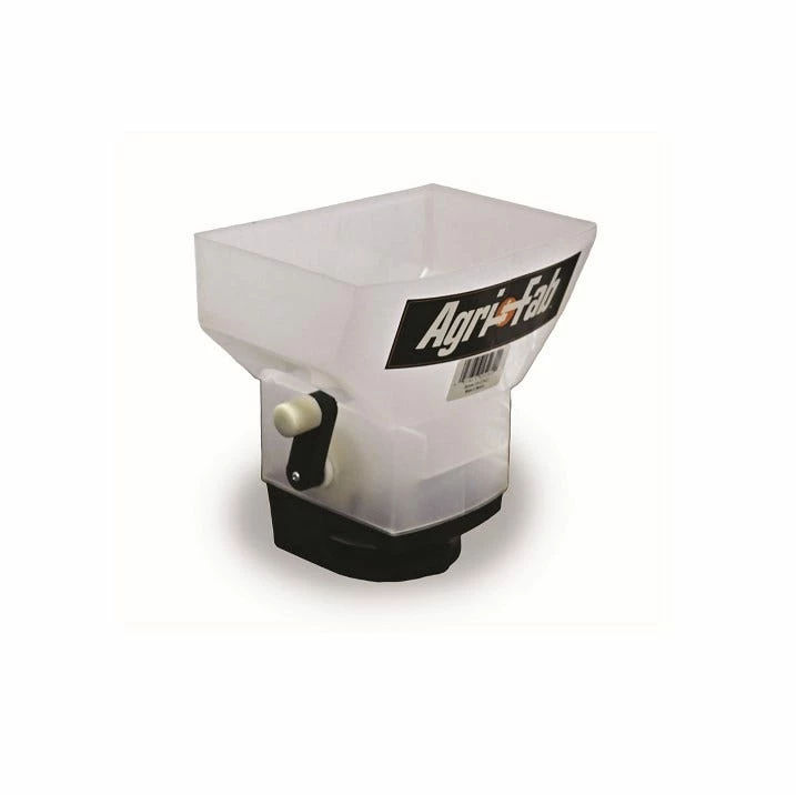 - The hopper holds approximately 6 pounds of pelletized fertilizer or ice melt, or 3 pounds of seed
