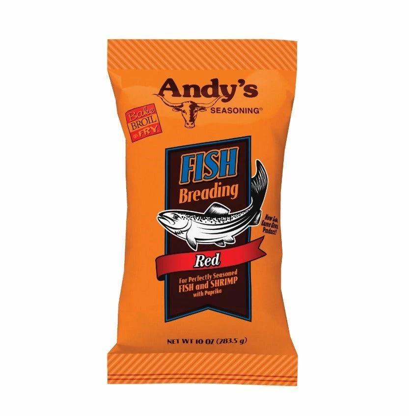 Andy’s Red Fish Breading is our most popular product. Premium Hungarian Paprika imparts extraordinary flavor plus an appealing hue that’s sure to please a hungry crowd. This unique cornmeal based breading is seasoned perfectly with just the right amount of a peppery bite. Andy’s Red Fish Breading is not spicy, not hot, but just right and golden bright.