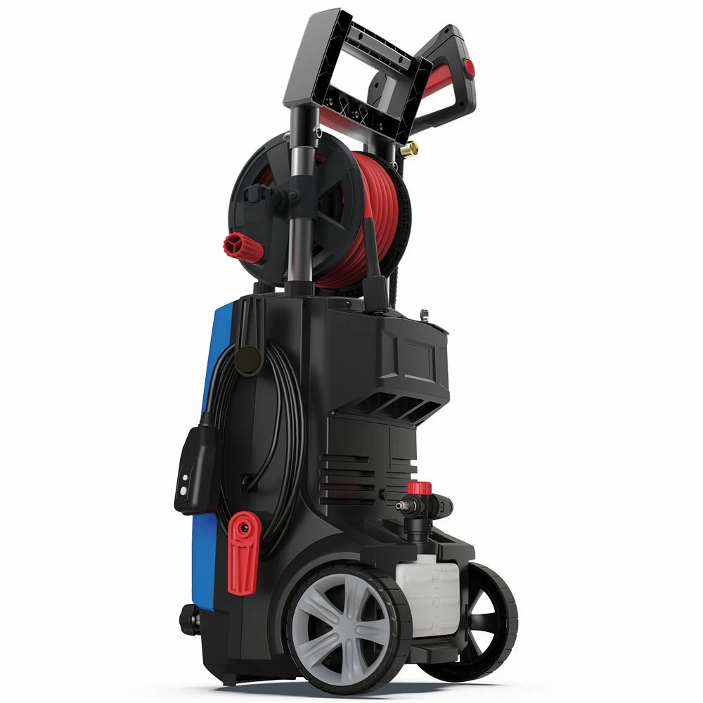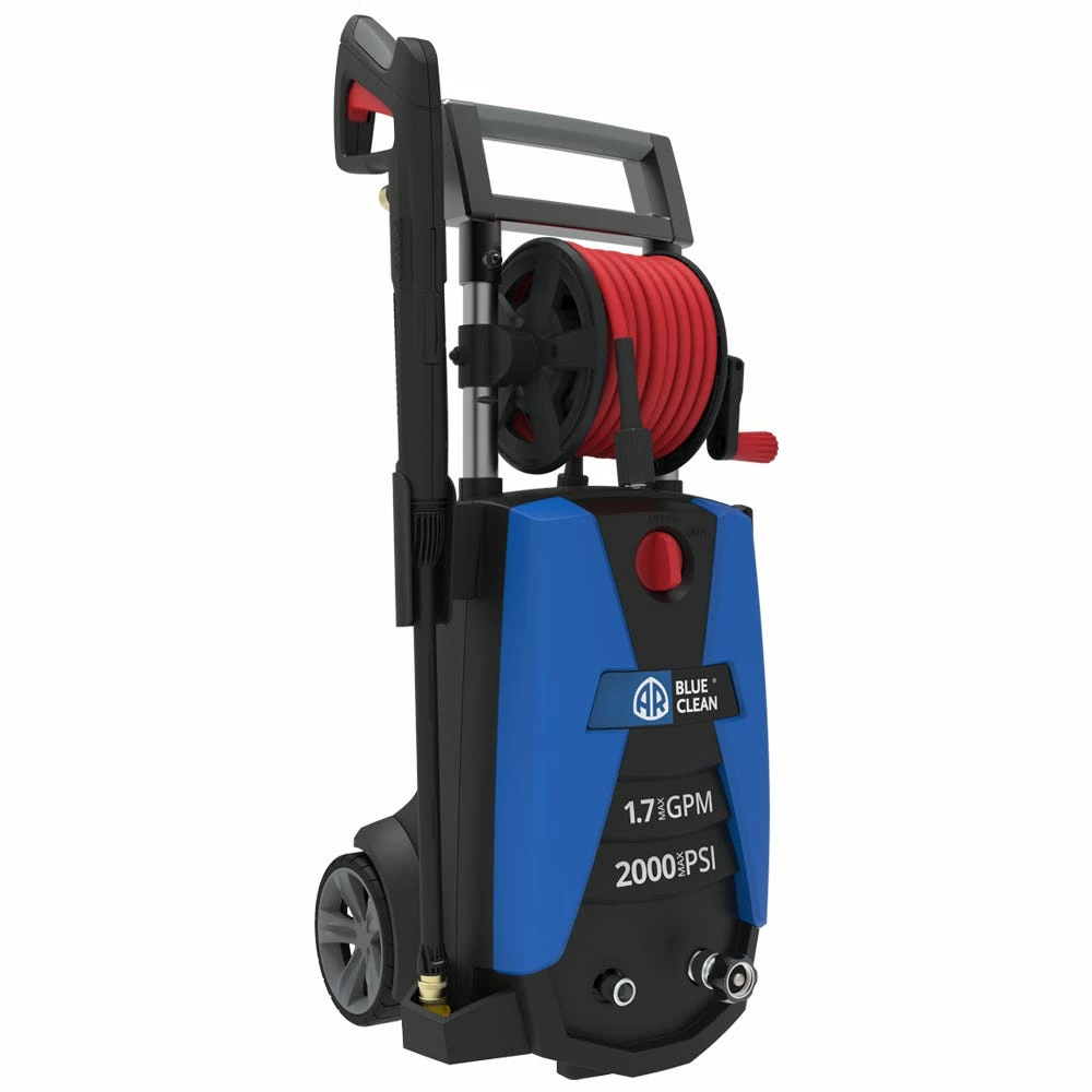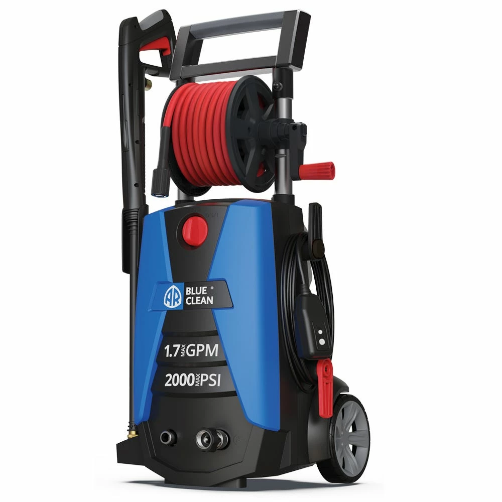 Cleaning is a breeze with AR Blue Clean electric pressure washers. Tackle any exterior home cleaning project with the BC383HR 2000 max PSI pressure washer. The unit is easy to use, portable, and is a perfect unit for the casual cleaner. Simply remove the 25’ super soft, high-pressure hose from the on-board hose reel for quick exterior pressure washing. The included 15 & 25 degree nozzle is perfect for siding, patios, driveways, vehicles, sidewalks—any home cleaning job you can throw at it. Attack caked-on dirt and grime with the included quick connect rotary turbo nozzle.
