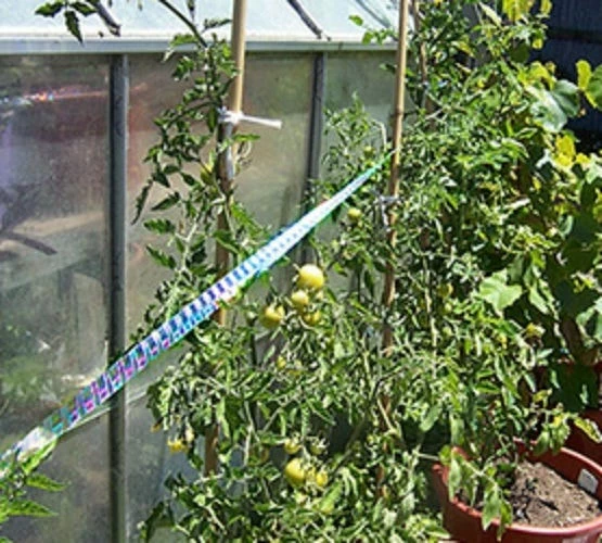 Holographic bird tape flashes blinding light & makes noise when it flaps in the wind. Irri-Tape® is a multi-sensory attack scares birds away from the treated area. Also known as Flash Tape, Foil Tape, Bird Tape, Repeller Ribbon, Mirror Tape, Reflective Tape, Mylar Tape, Holographic Tape, and many others, this product has been used for years.
