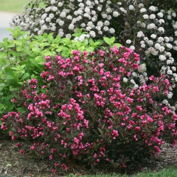 - Award Winning dark puirple foliage accent prolific bright pink blooms.