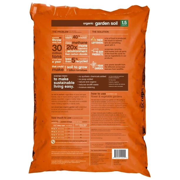- Ecoscraps organic garden soil is derived from a unique blend of fruits, vegetables and other organic materials
