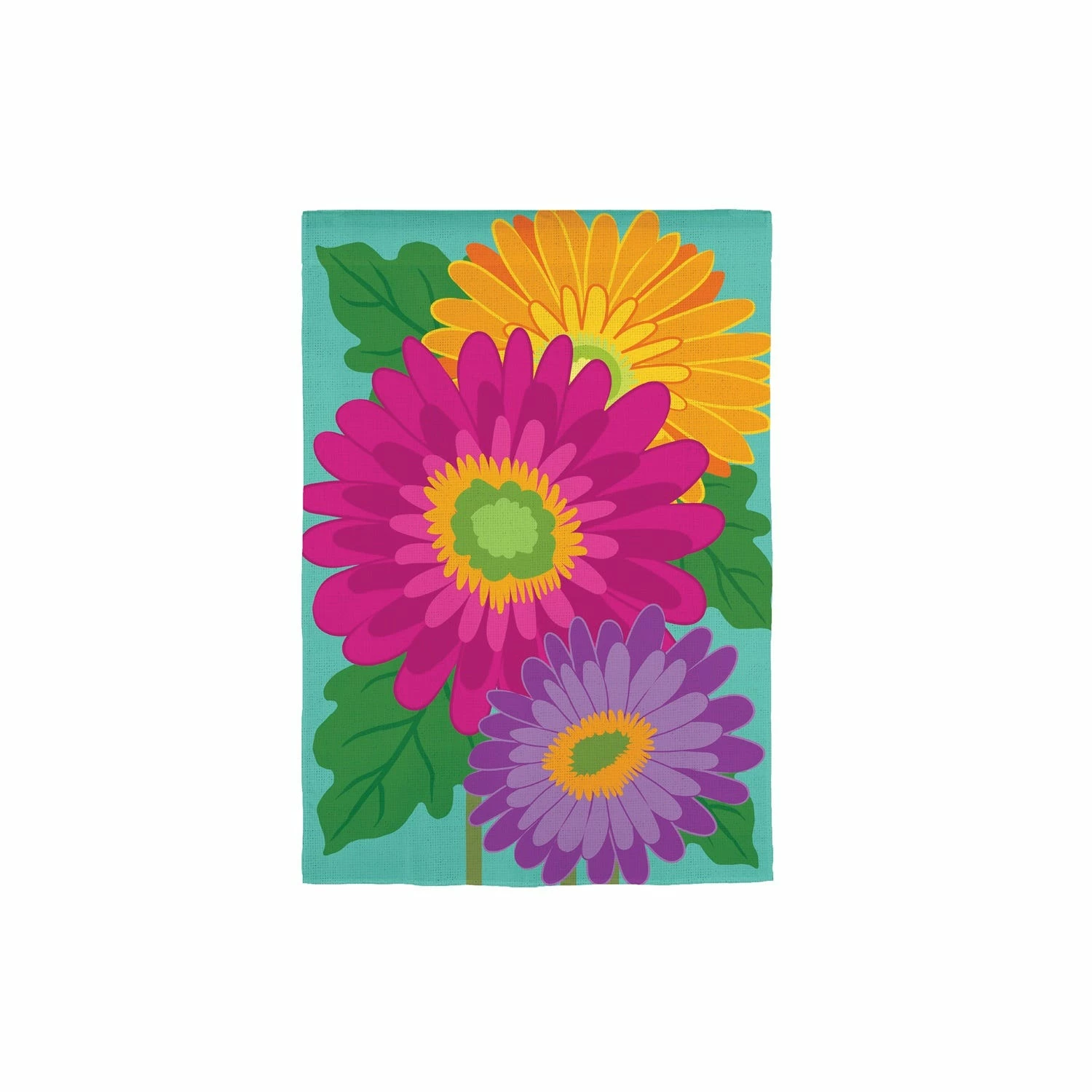 Evergreen Gerbera Daisy Trio Garden Burlap Flag – 14B9766