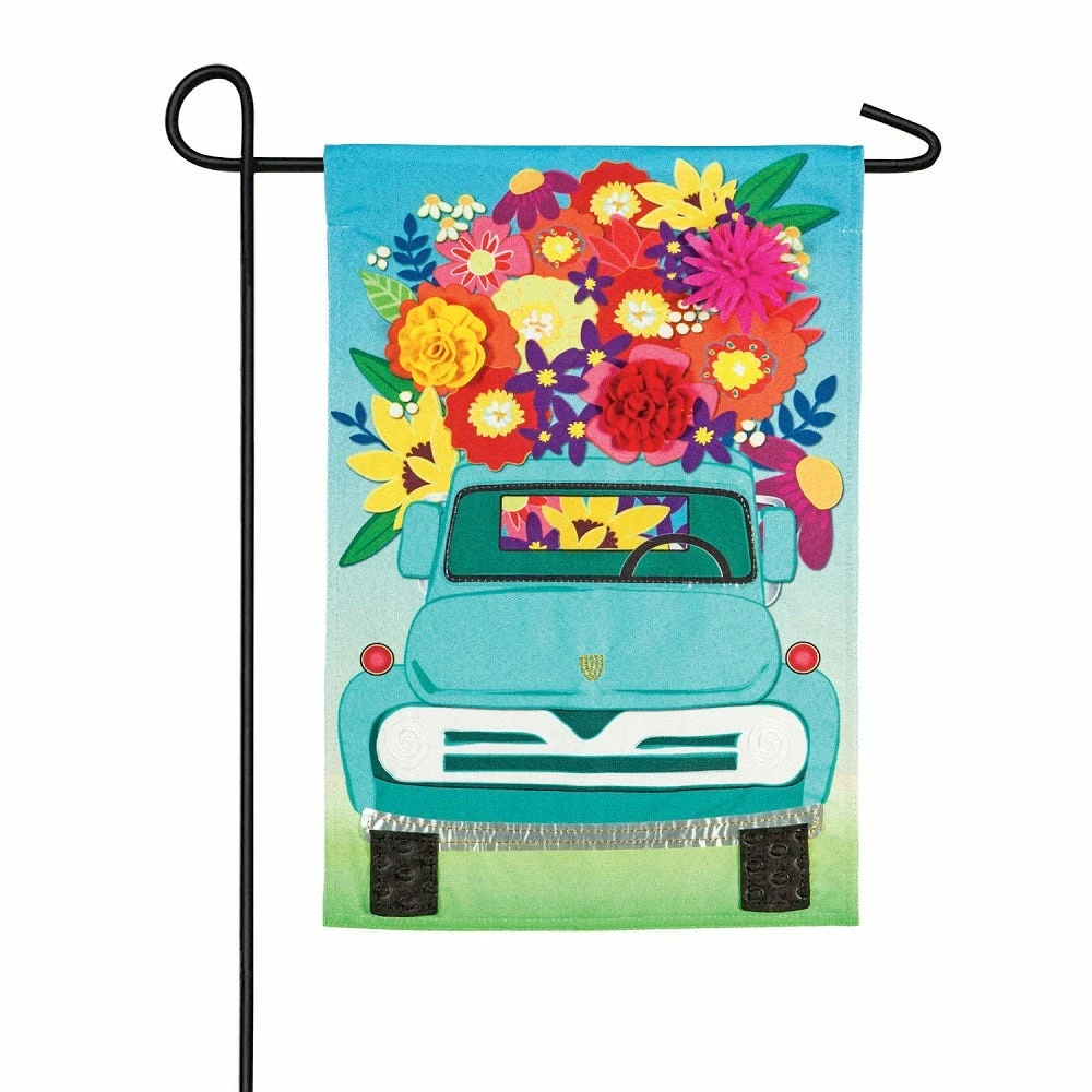 Evergreen Mint Flower Truck Garden Linen Flag – 14L8908BL