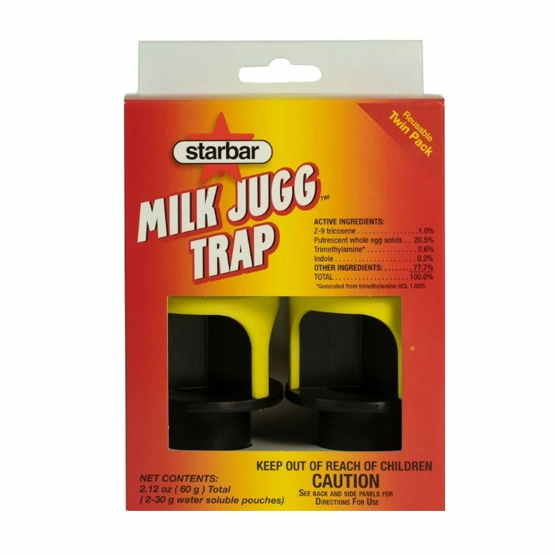 This kit uses a cap that fits any milk jug and turns it into an inexpensive fly trap. Just mix the included attractant in a jug, screw the patented cap on, and hang to start catching those annoying flies. This is perfect for the barn, patio, garage, or where ever you have a fly problem.