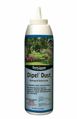 Dipel Dust is a biological insecticide powered by the bacterium Bacillus Thuringiensis kurstaki (Btk). This rod-shaped bacterium is naturally found in the soil in many places around the world and targets pests in the Lepidoptera order. Many of the most serious plant pests are in this order, including (but not limited to) Gypsy Moths, Hornworms, Leafrollers, Budworms, Loopers, Tent Caterpillars, and Webworms. When a caterpillar ingests treated foliage, the Btk releases a type of endotoxin which paralyzes the caterpillar’s digestive tract. As soon as this happens, the caterpillar will stop feeding and die a short time later.