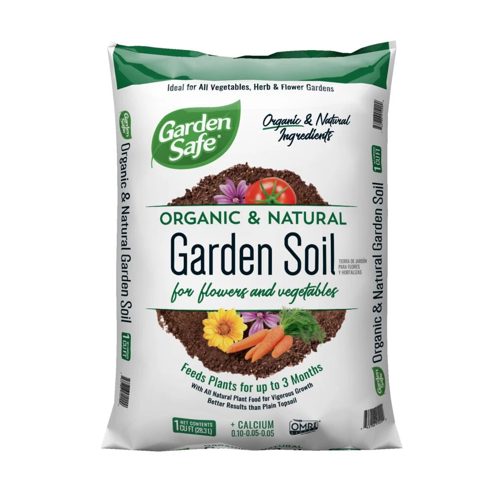 Garden Safe Garden Soil is an organic vegetable soil that contains natural plant food. It grows delicious and incredible vegetables and herbs. It contains a special blend of organic soil made from natural ingredients, including sphagnum peat moss, composted bark or reed-sedge peat, organic plant food and a natural wetting agent. It provides slow-release food that lasts up to 3 months.