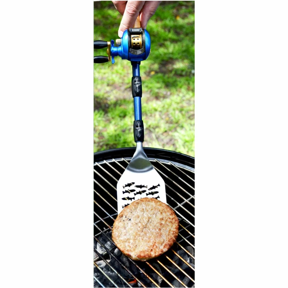 The Gibson Bait Cast Fishing Pole BBQ Spatula features a realistic fishing reel with authentic spinning action, and a convenient ergonomic handle. The Bait Cast Fishing Pole BBQ Spatula is dishwasher safe and heavy duty! A great gift for any fishing or outdoor enthusiast.