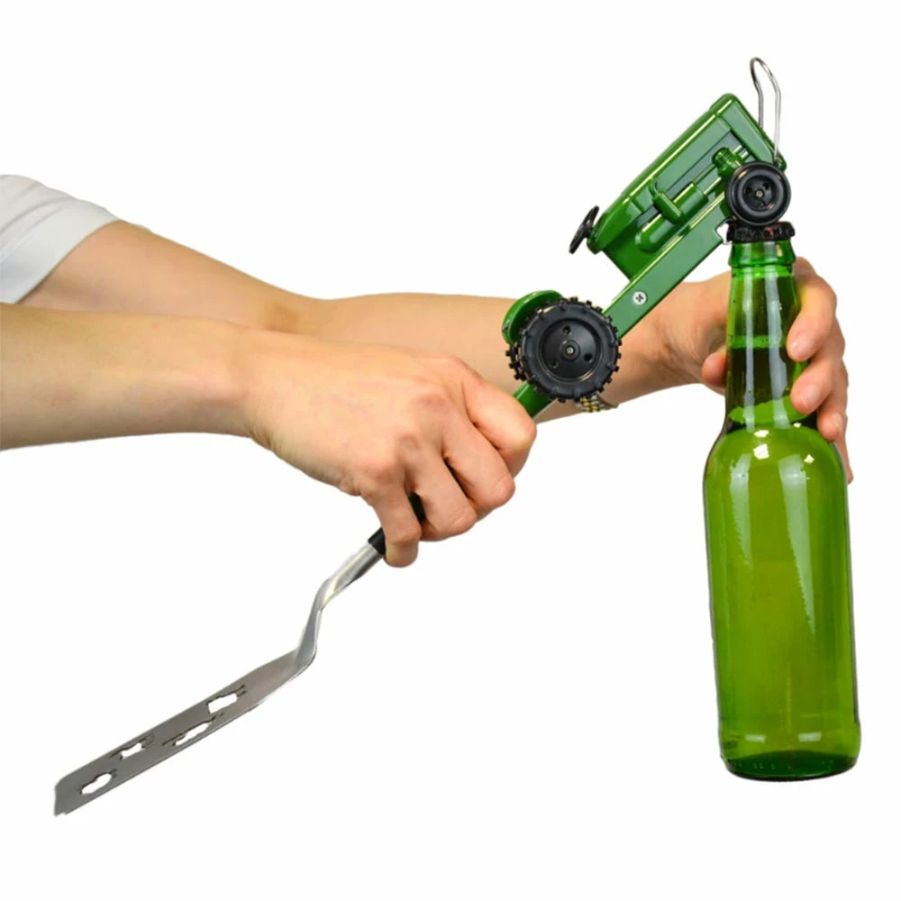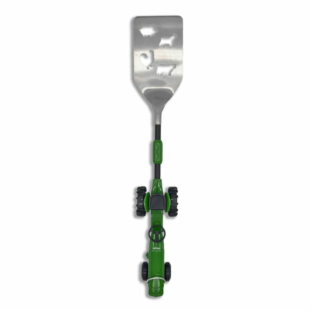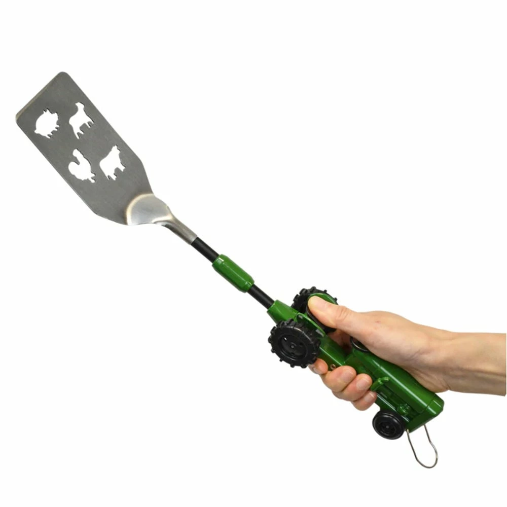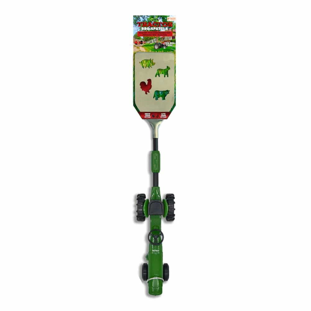 The Gibson Tractor BBQ Spatula comes with a detailed green tractor handle with real spinning wheels, and livestock themed die cuts in the spatula blade. It also has a bottle opener and convenient hanging hook. The Tractor BBQ Spatula is dishwasher safe and heavy duty. A unique gift for any grill master, farmer, or outdoor enthusiast.