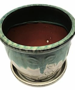 Various Brands Embossed Planter with Attached Saucer, Copper Cream, Small – R358CCCS – Planters