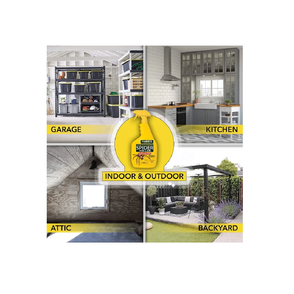 Harris Spider Killer is odorless and long lasting. In addition to spiders, it also kills flies, mosquitoes, and other insects. This crack and crevice spray will kill spiders once it has had a chance to dry. Indoor and outdoor applications. Always read and follow label directions before and during use.