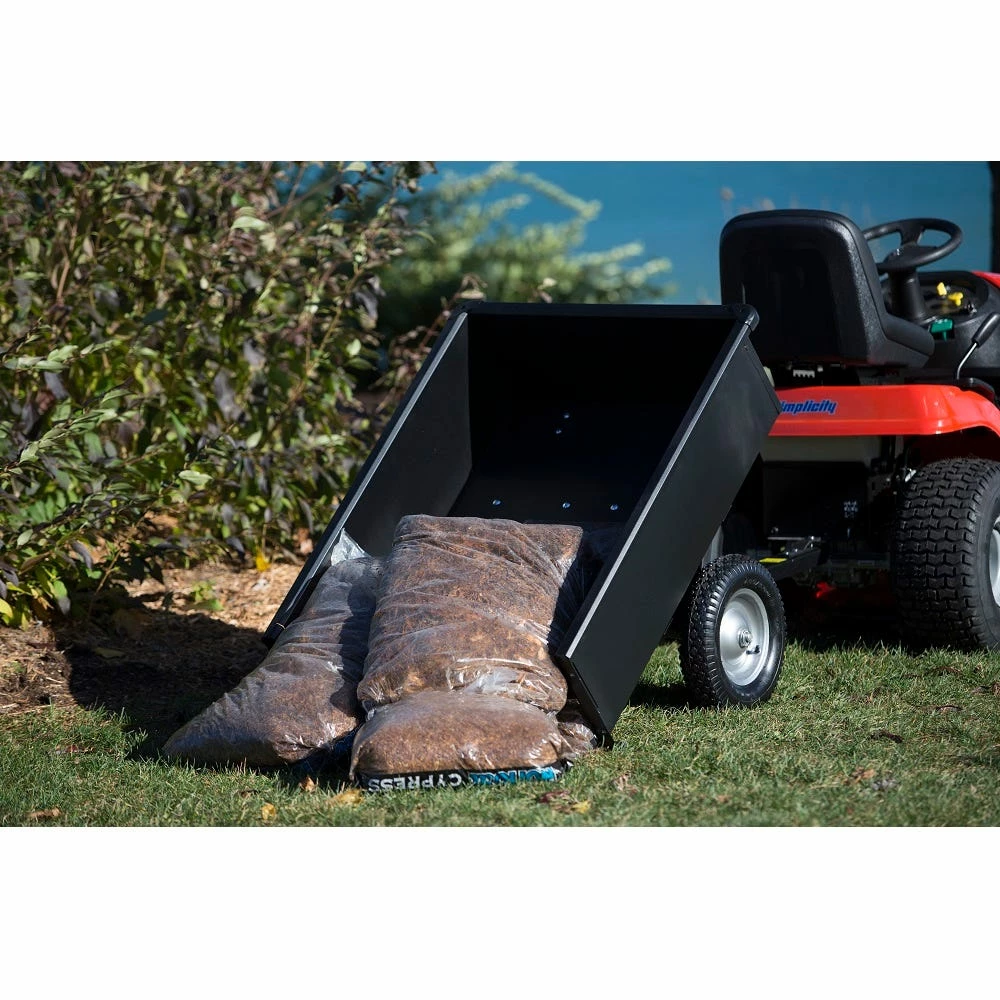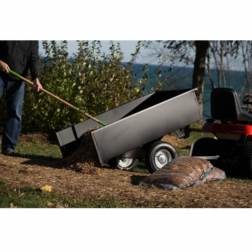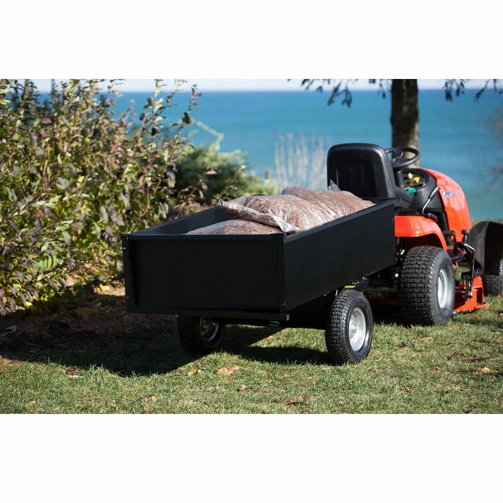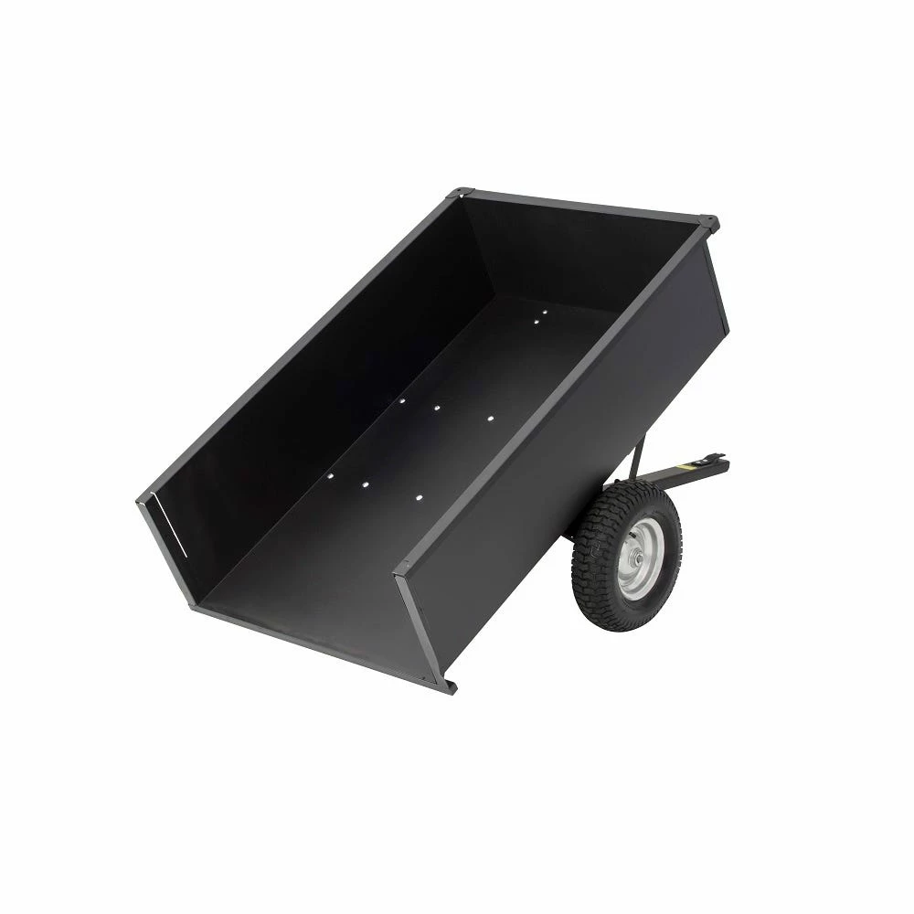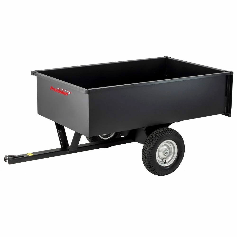 The Precision steel trailing dump cart is easy to assemble with a single piece welded body, one piece undercarriage and 1500 lb. capacity making this a work horse for most projects. Precision is a leader in tow behind and push pull equipment engineering and manufacturing products to handle the tougher jobs lawn care pros and everyday garden enthusiasts take on.