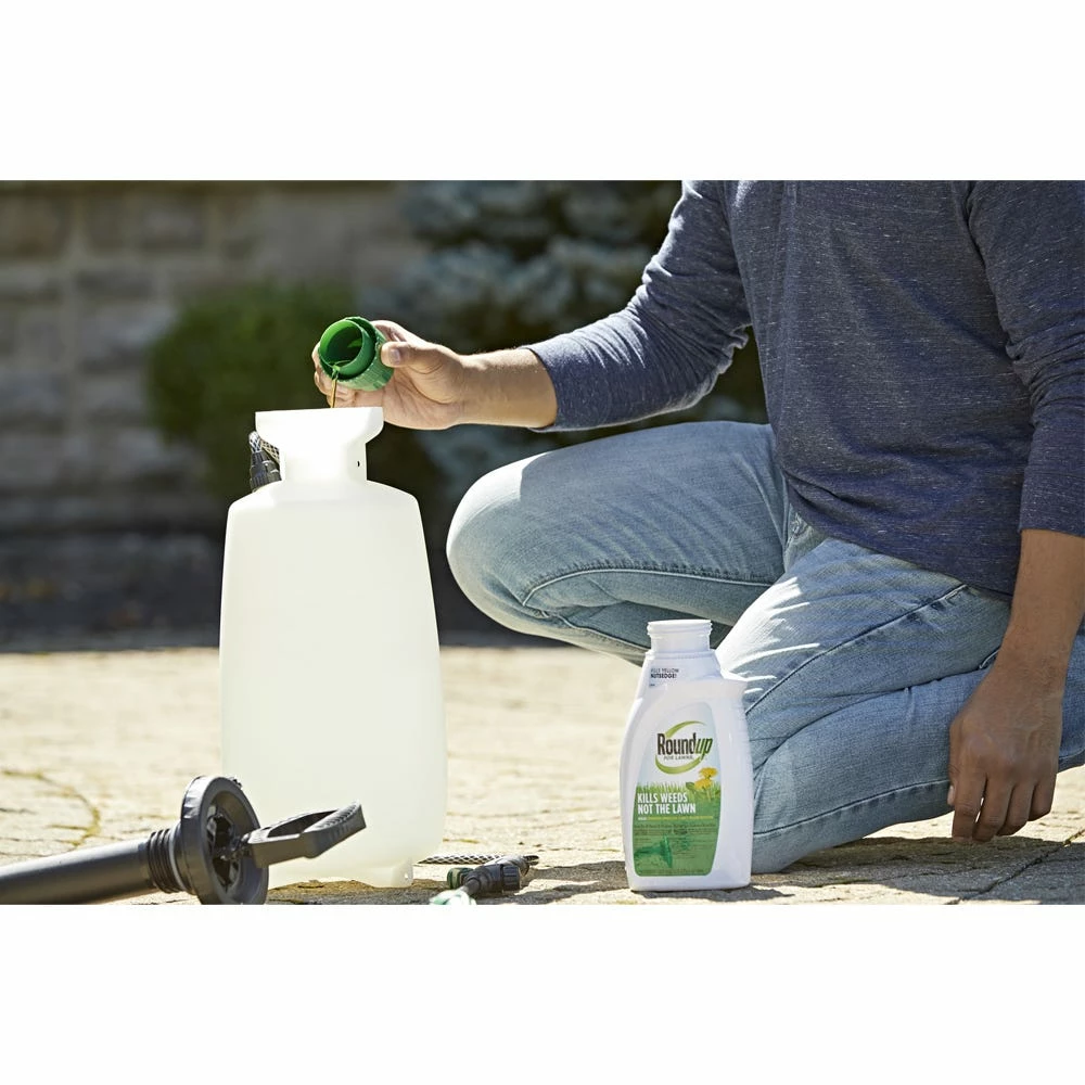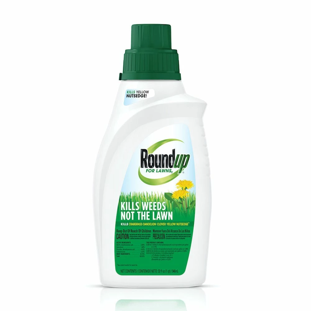 Roundup For Lawns 2 is a formula that kills weeds, not the lawn! It controls over 250 common lawn weeds, roots and all, and is especially effective on hard-to-kill weeds such as crabgrass, dandelion, clover and yellow nutsedge. The concentrate formula is easy to mix and measure and is the best value when applying product to your entire lawn. It only takes one bottle to cover up to 5,000 square feet! This fast acting formula starts killing on contact and kills weeds down to the root so they don’t come back. In addition, its rainproof in as little as 3 hours! Roundup For Lawns 2 is a simple step towards a beautiful, weed free lawn. Roundup For Lawns 2 works great on your lawns, and even better in combination with Roundup Weed & Grass Killer Concentrate Plus to kill weeds in your non-lawn areas such as sidewalks, patios, driveways and garden beds — for weed killing options all around your home.