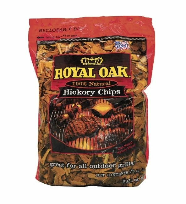 - Now with royal oak hickory chips you can enjoy that great flavor right at home.
