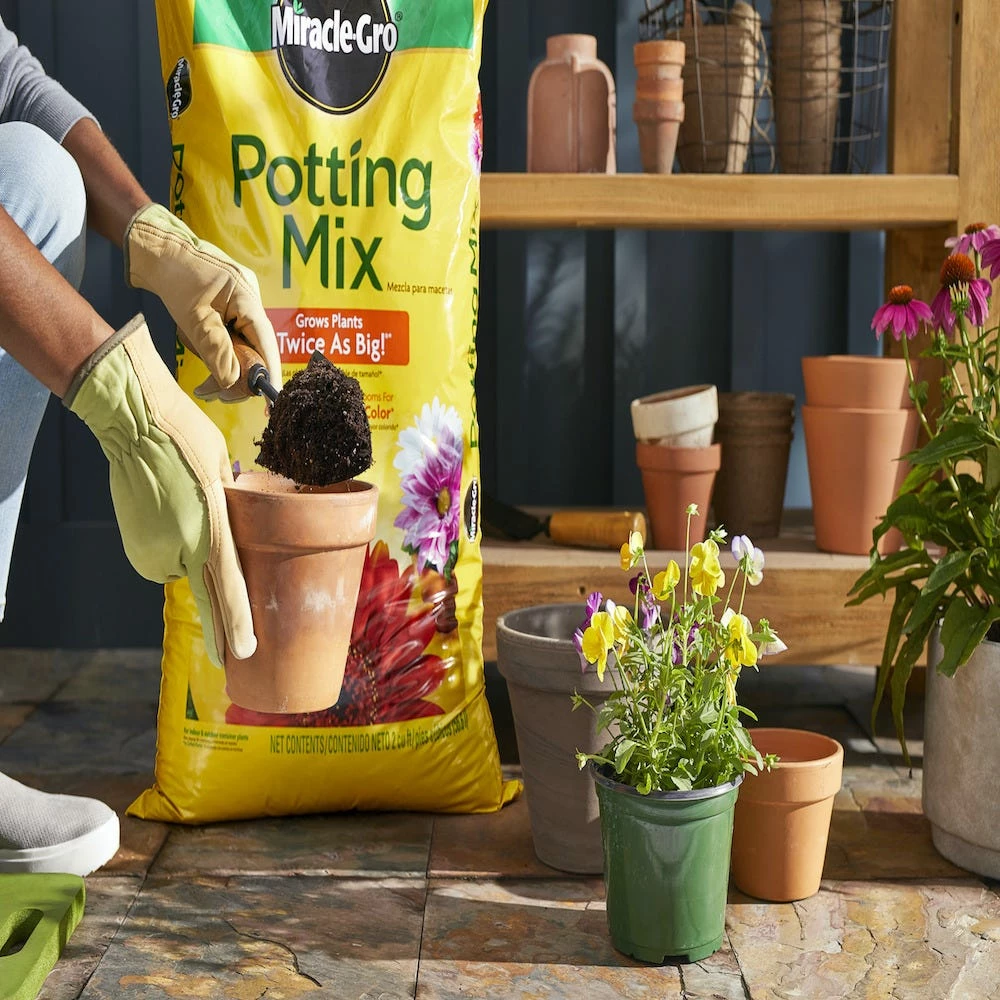 Your plants want to show off. Give indoor and outdoor container plants the right ingredients to grow bigger and more beautiful with Miracle-Gro Potting Mix. Our specially formulated mix feeds for up to 6 months for more blooms and more color (vs. unfed plants). Use with indoor and outdoor container plants. Grows Plants Twice as Big (vs. unfed plants)!