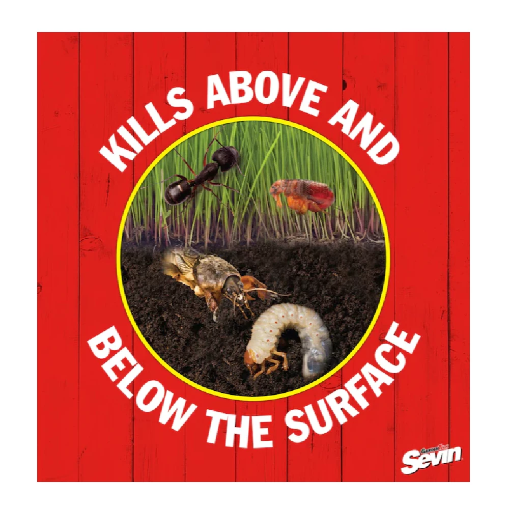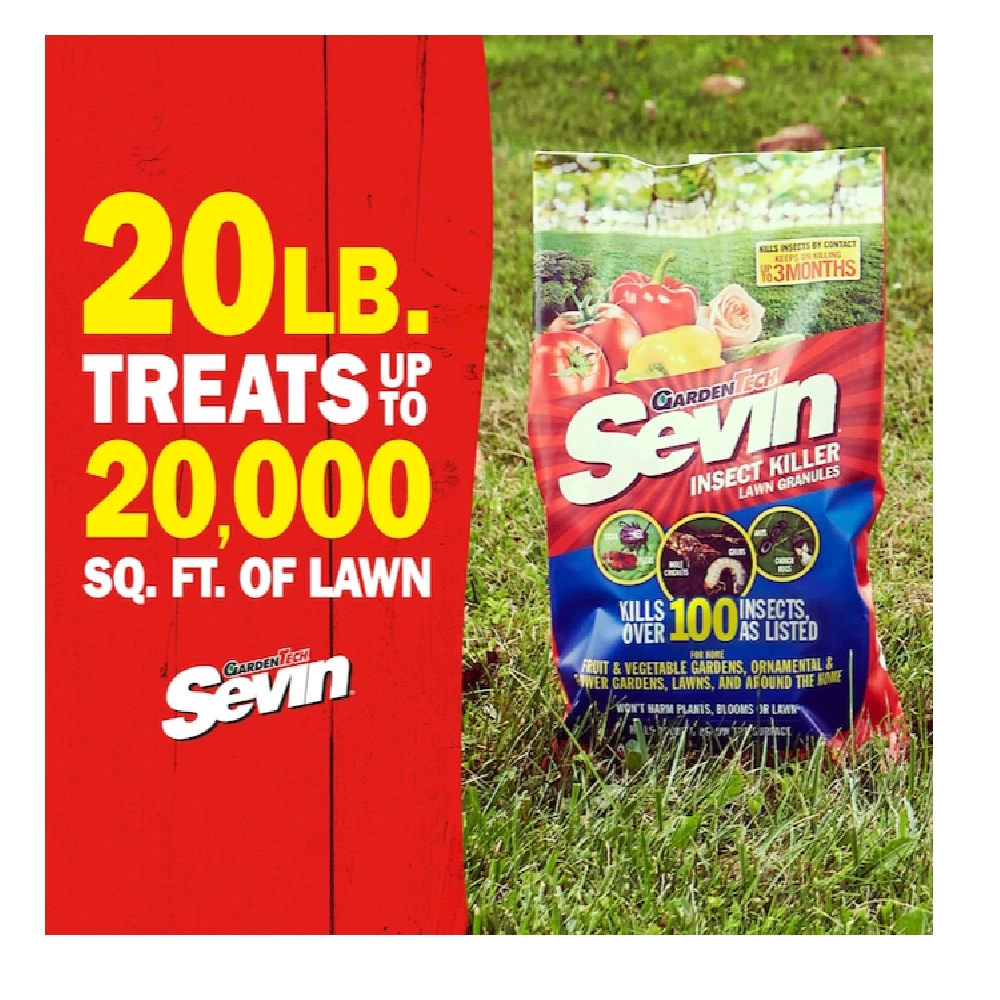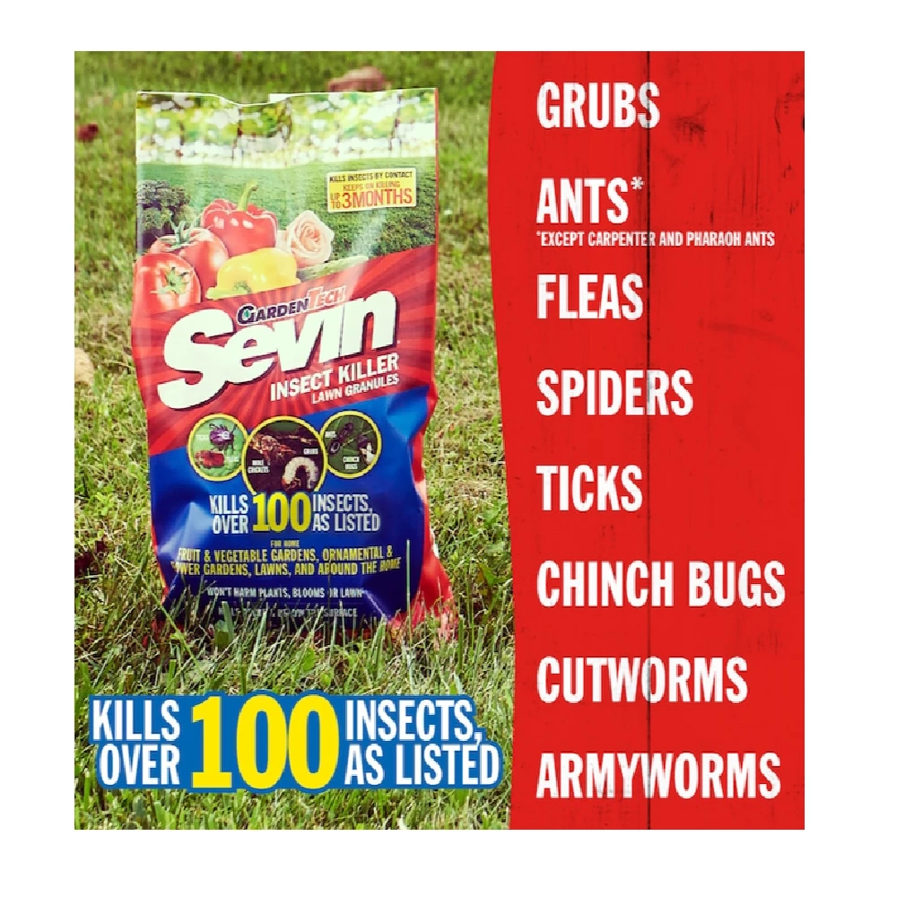 When insect pests or their damage appear in your lawn or landscape, take control with a product you can trust. Easy-to-use Sevin® Lawn Insect Granules kill and control insect pests in lawns, home perimeters and ornamental and edible plantings. Just load your lawn spreader and apply granules at recommended rates. Water thoroughly to release the active ingredient and reach pests where they hide. Kills over 500 insects. Fast acting and protects up to 3 months. Treats lawns, flowerbeds, ornamentals and home perimeter. Visible results in minutes.