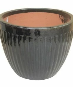 Various Brands Round Planter with Vertical Ribbing, Glossy Black, Large – GC0577GBL – Planters