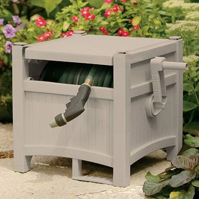 - Conveniently conceals and stores garden hose