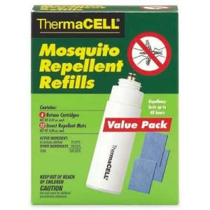 This Thermacell Mosquito Repellent Refills (16-Pack) contain 4 butane cartridges and 12 repellent mats. Each cartridge works for up to 12-hours to provide a total of 48-hours of repelling power. They will repel mosquitoes, black flies and no-see-ums so you can enjoy your outdoor activities. The Value Pack Refill comes with 4 butane cartridges and 12 mats for up to 48 hours of protection. Refills are also available in a Single Pack Refill, which comes with 1 butane cartridge and 3 repellent mats, providing up to 12 hours of protection. This product is registered by the EPA.