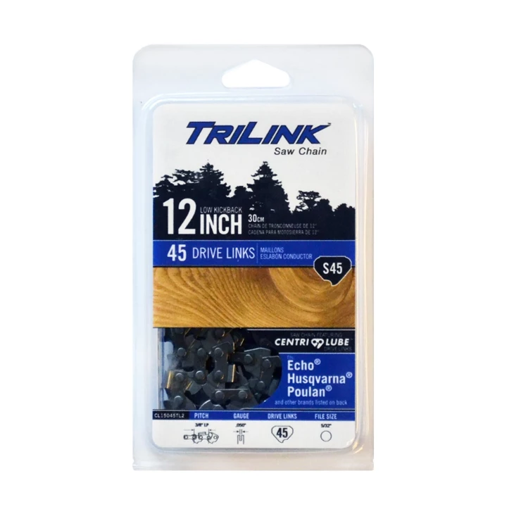 TriLink saw chain has chromed cutters for fast, smooth cutting and low kickback design for safety and durability; Please see fit up guide for complete list of compatible chainsaws; Underwriter’s laboratories (UL) certified to American National Standards Institute (ANSI) standards for low kickback safety chain; Centri-lube self-lubricating drive links that enhance chain life and reduce stretch