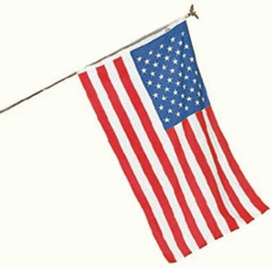 US Flag 100% made in The USA. Printed 50 percent cotton and 50 percent polyester retains color, provides a quality appearance and feel, and has brass grommets in polyester canvas heading for durability. For use with in-ground flag poles.