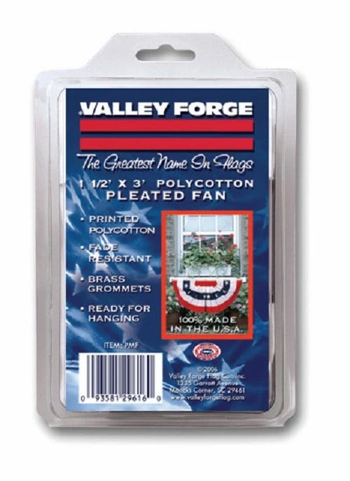 - Printed polycotton mini-fan flag has five stripes with stars.