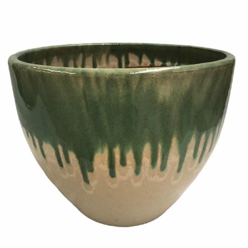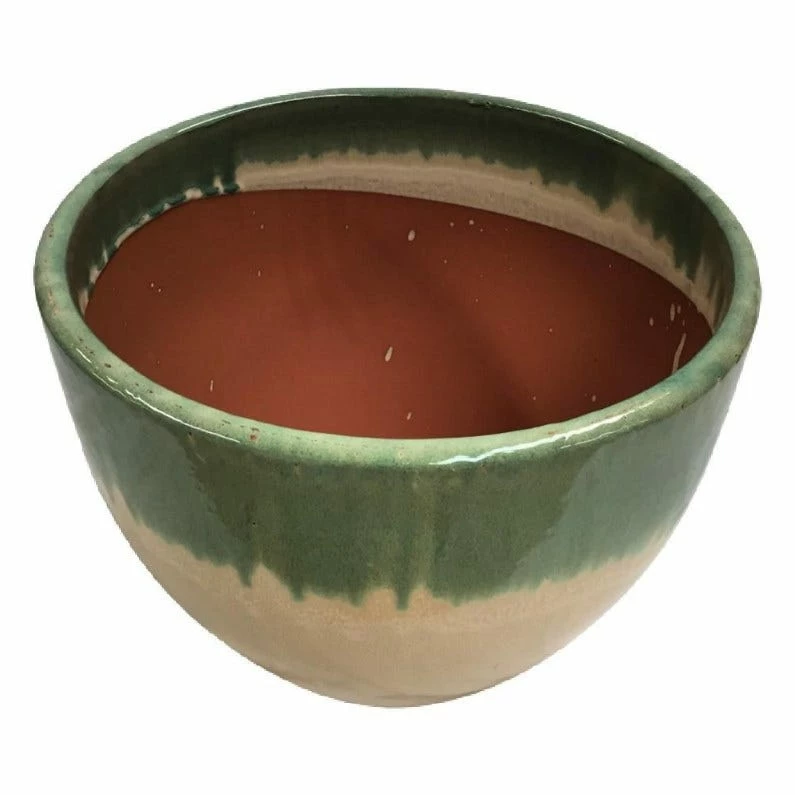 - Glazed planter with attached saucer