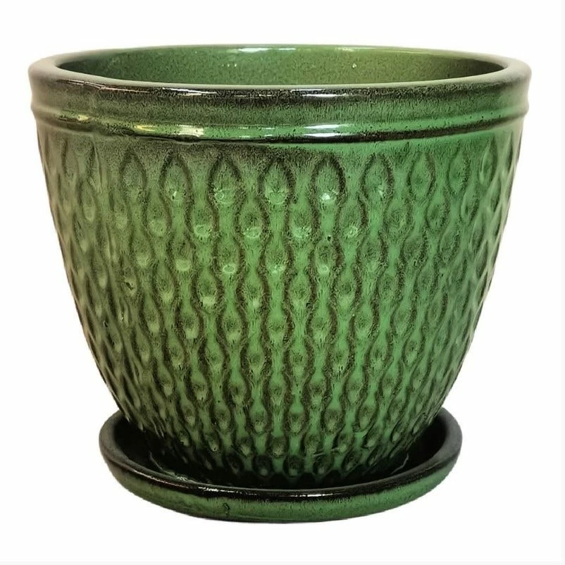 - Glazed planter with attached saucer
